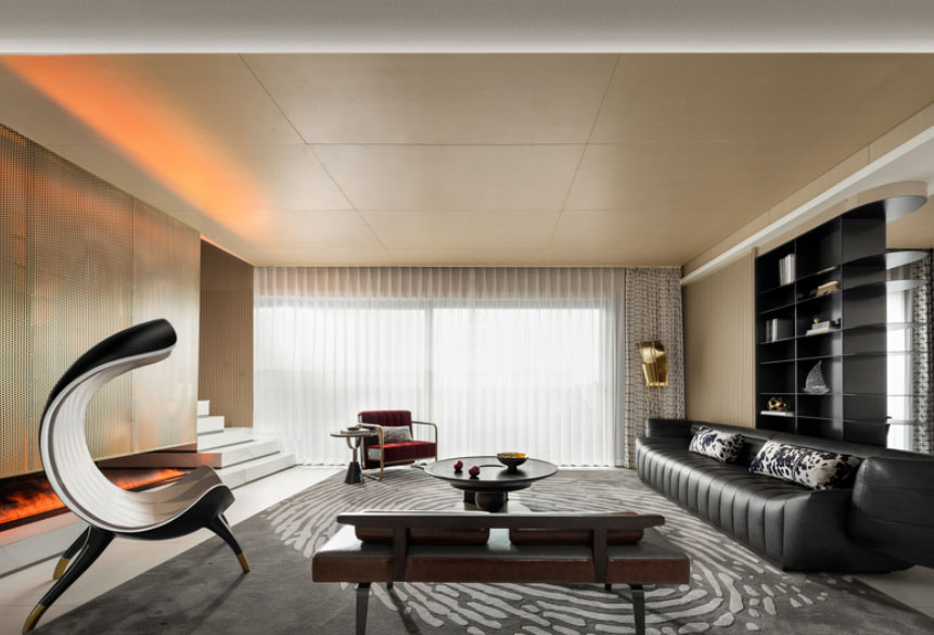 通过多元的审美秩序和精致的艺术风格,寻求空间个性和精神共鸣的契合点,从而谈及精英圈的文化品位、生活仪式和审美趣味,从城市视野塑造内心共鸣的深刻诉求。样板房家具在艺术设计师的笔下,生成具有震撼的视觉魅力。淡淡的红色点亮了空间的灵魂,在灰色的田野里散发着不羁的气息。神秘的冷静与热情相互碰撞,冲击着生活的深度,营造出低调而张扬的视觉效果。在美学设计处理冲突的逻辑上,通过风格的独特对比,开放式餐厅既有简约洁白的东方意境,又有奢华的装修设计,线条挺拔,材质刚柔并济,精致而不浮夸,包容一切个性,满足生活仪式。